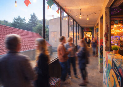 Statt einer klassischen Ausstellung erwartet die Besucher ein begehbares Gesamterlebnis – Jeder Raum und offener Bereich erzählt ein eigenes Thema, zugleich verbindet eine gemeinsame gestalterische Konstante das gesamte Gebäude wie ein roter Faden, dem man spielerisch folgen kann. Die Designtage verleihen dem Ort für eine begrenzte Zeit genau jene Lebendigkeit und Innovationskraft, die später auch das Wohnen für Studierende, Auszubildende und Berufseinsteiger prägen soll.
