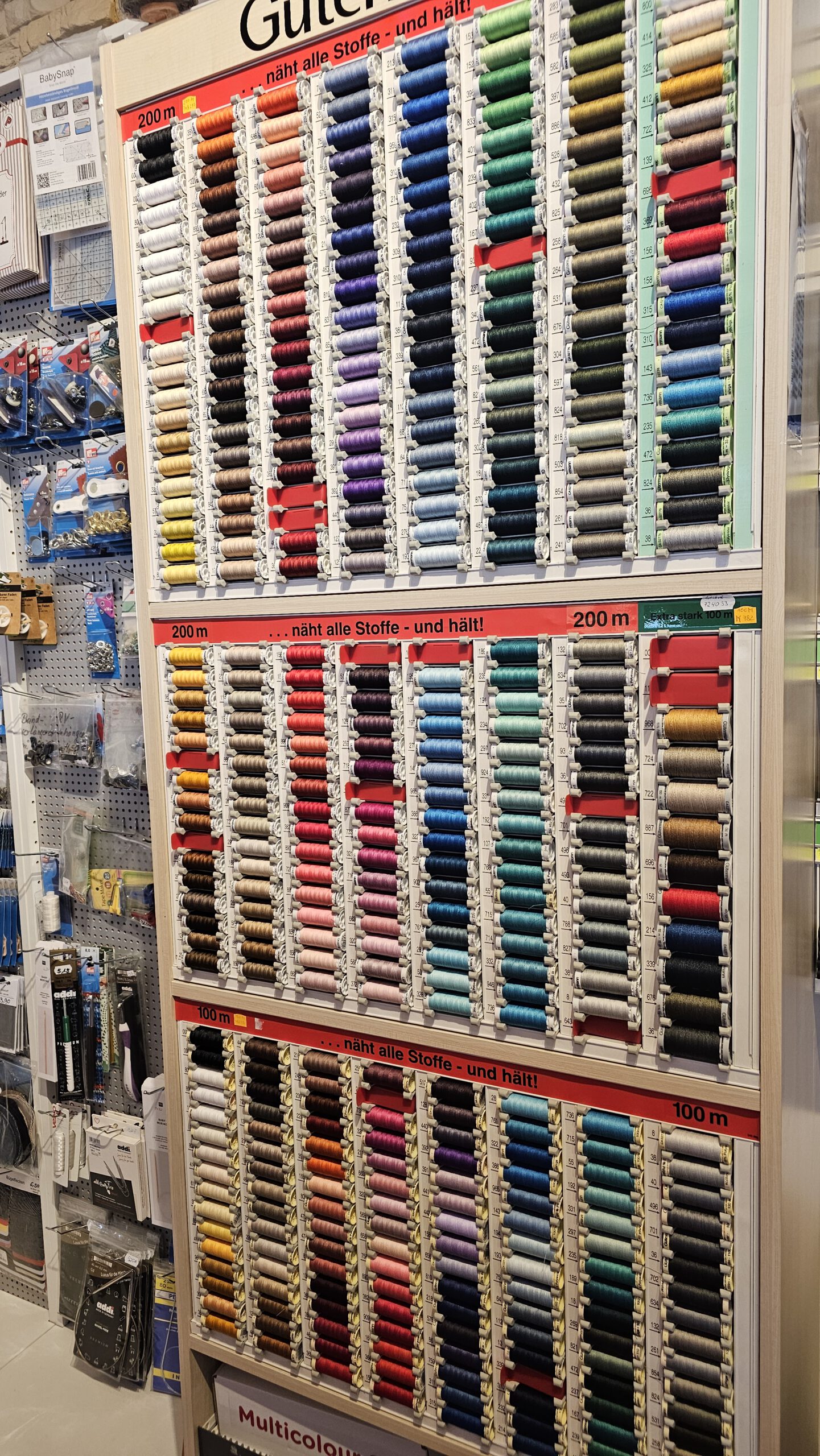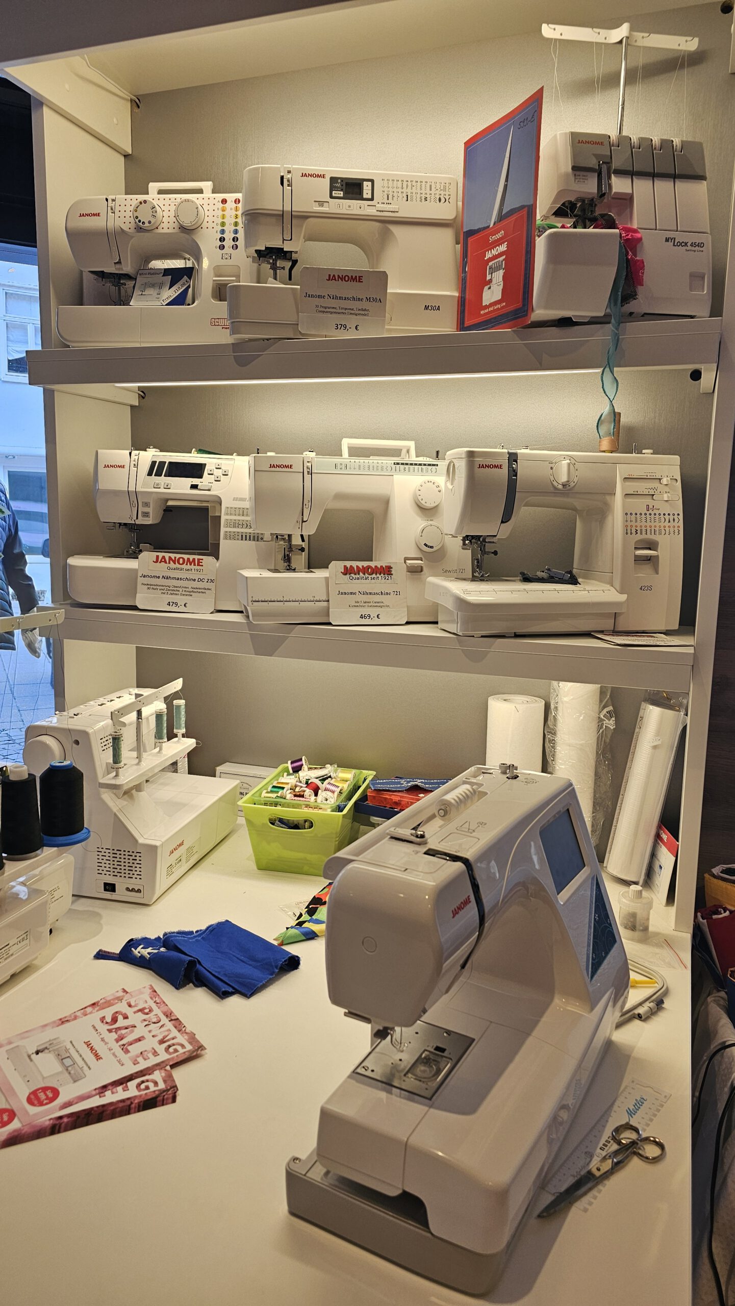 Nähmaschinen, Stoffe, Garne, Knöpfe. Alles rund um das Thema „Nähen“. Nähkurse können bei mir gebucht werden, und ich schleife Scheren und Messer. Ich besticke Handtücher, Geschirrtücher, Taschentücher…