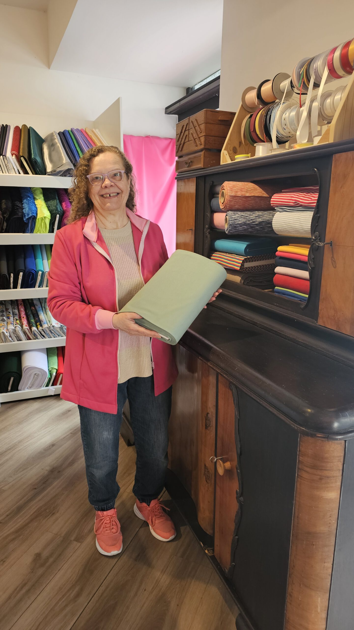 Mir gefällt es, Kunden zu beraten und dazu beizutragen, dass aus einem Stück Stoff ein Kleid, eine Hose, ein Rock entsteht. Oder die Erstausstattung für das Baby, das Taufkleid für das Enkelchen. Nähen ist ein kreatives Hobby, das der Fantasie keine Grenzen setzt.